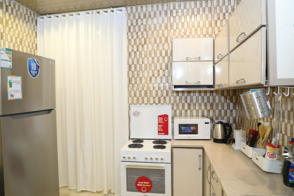 – Kitchen: Fully equipped shared kitchen with appliances including a fridge, microwave,